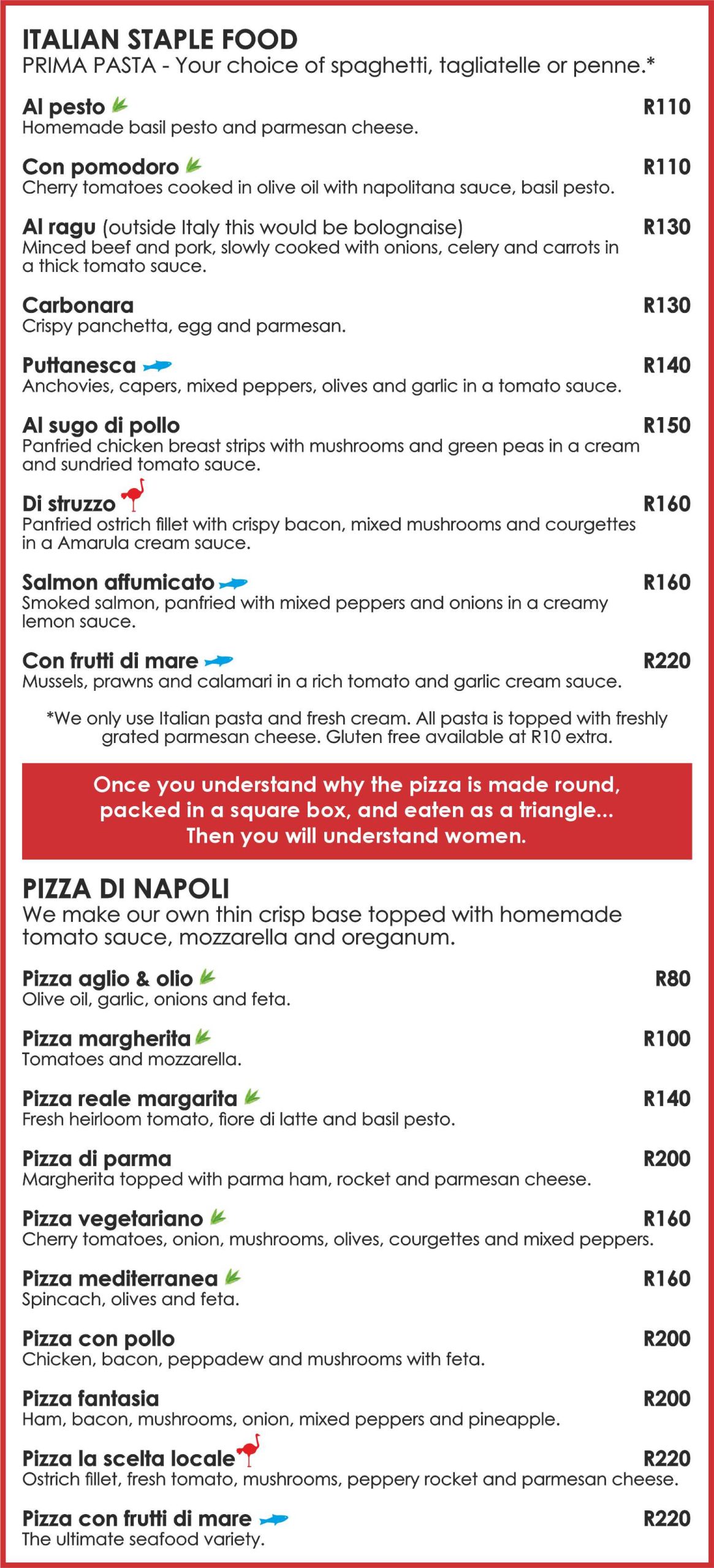 Panfried ostrich fillet with crispy bacon, mixed mushrooms and courgettes in a Amarula cream sauce.